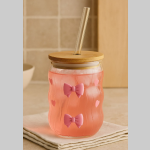 Vaso vidrio con sorbete bambu moño 450ml