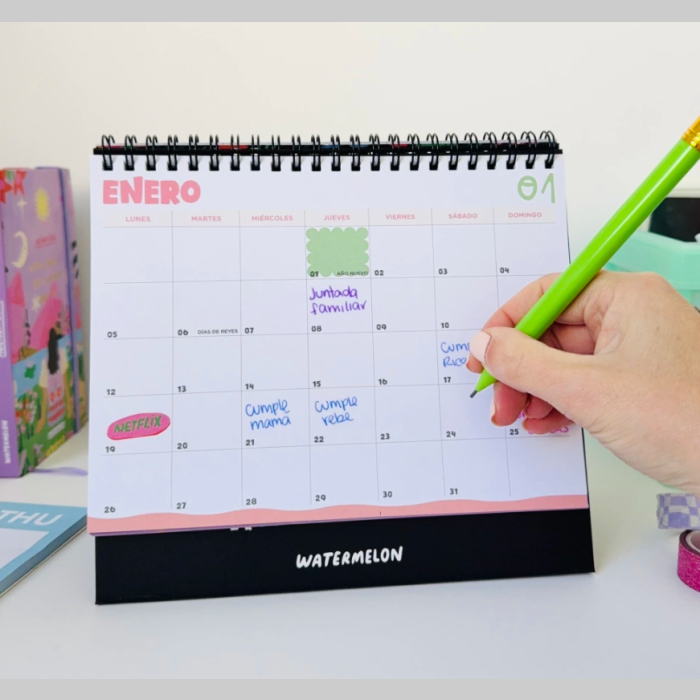Perfecto para acompañarte en tu escritorio durante todo el año. Cada mes viene con una frase inspiradora que te motiva a seguir adelante. Con un diseño colorido y funcional, ideal para mantener tus días organizados y llenos de buena energía.