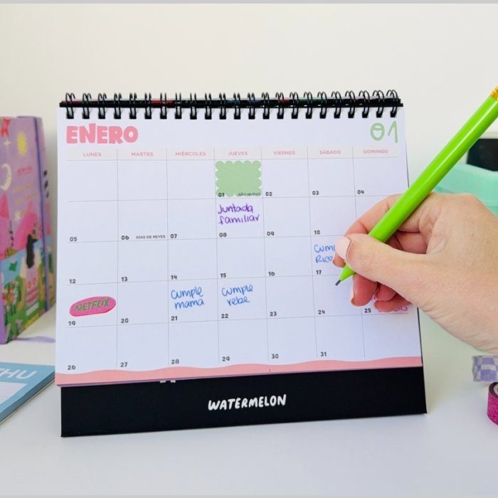 Perfecto para acompañarte en tu escritorio durante todo el año. Cada mes viene con una frase inspiradora que te motiva a seguir adelante. Con un diseño colorido y funcional, ideal para mantener tus días organizados y llenos de buena energía.
