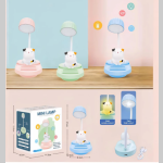 (Lámpara de escritorio con tres niveles de brillo, cuenta con un pequeño soporte para celular . Se carga a través de un cable USB (Incluido)).