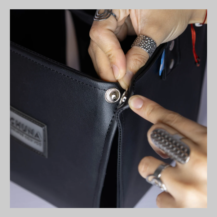 ¡Llegó la canasta matera que todos quieren! Compacta, plegable, hecha en eco cuero y con espacio para todo: termo, mate, yerba y más. Práctica y funcional, ideal para llevar todo lo necesario para el mate. Fácil de limpiar: ideal para el uso al aire libre, en viajes o en la rutina diaria. Diseño plegable: se pliega fácilmente para ahorrar espacio al guardarla o transportar. Cierre con broches a presión: asegura el contenido y brinda mayor practicidad.